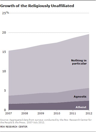 وی ادامه میدهد: به دنبال اتفاقاتی مانند حادثهٔ ۱۱ سپتامبر در سال ۲۰۰۱ و انتشار گزارشی از آزار کودکان توسط روحانی کاتولیک رومی در روزنامهٔ بوستون در سال ۲۰۰۲ علاقه به نظریهٔ سکولاریزاسیون افزایش یافت و افرادی مانند ریچارد داوکینز،[6] هیچنز[7] و دنیل دنت[8] کتابهایی نوشتند که به نوعی در پیشبرد سکولاریزاسیون مؤثر هستند. در سال ۲۰۱۲، پیو، مرکز جمعآوری داده،[9] گزارشی دربارهٔ غیر دینداران منتشر کرد که نشان میدهد ایالات متحده به سرعت در حال سکولار شدن است و به نوعی الهامبخش جامعهشناسان شد تا سکولاریزاسیون را به عنوان نظریهای قابل اجرا بررسی کنند.