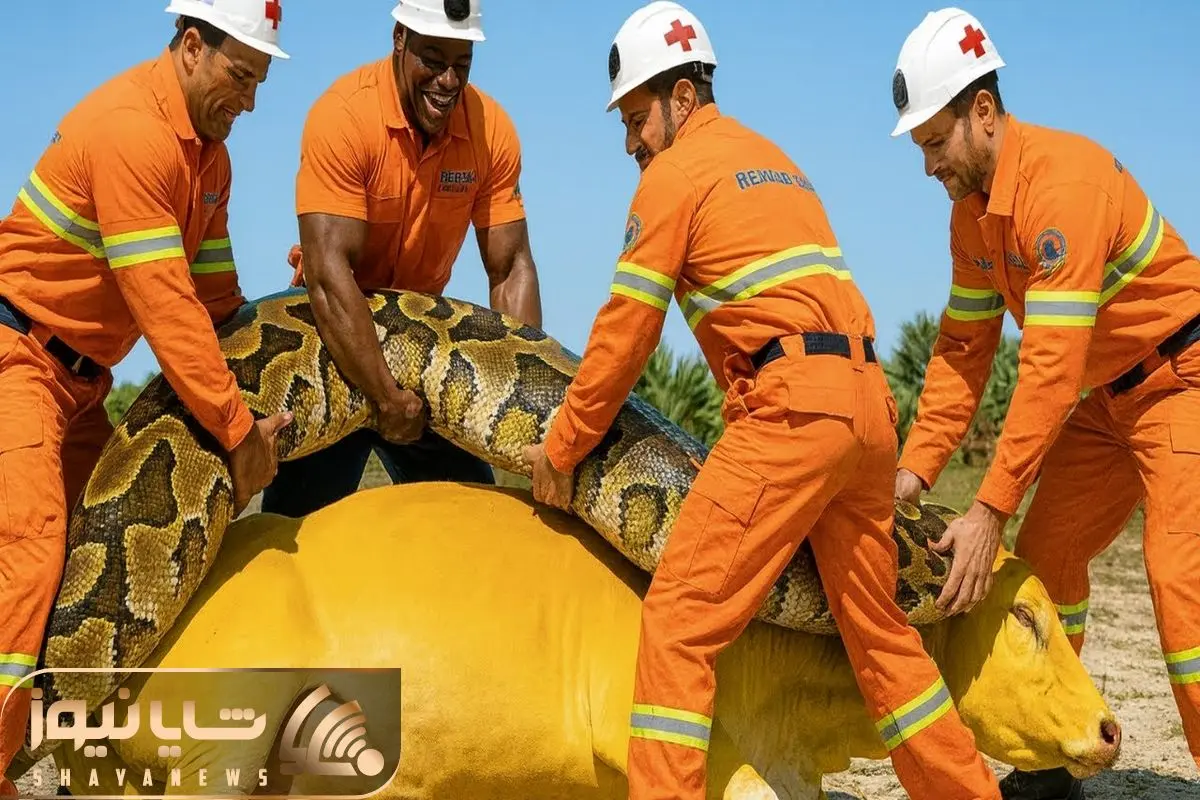 در این ویدیو که به کمک هوش مصنوعی تولید شده می بینید که گاو شجاع برای اینکه مادرش رو از چنگ مار پیتون نجات بده چه کار می کند