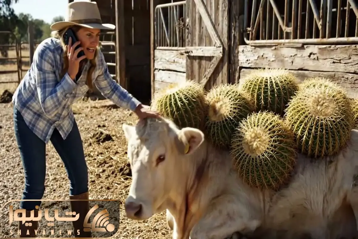 وقتی گاو گفتار کاکتوس های عظیم میشه و تمام بدنش رو فرا می گیره و تیم نجات تقلا می کنه برای رهایی دادنش